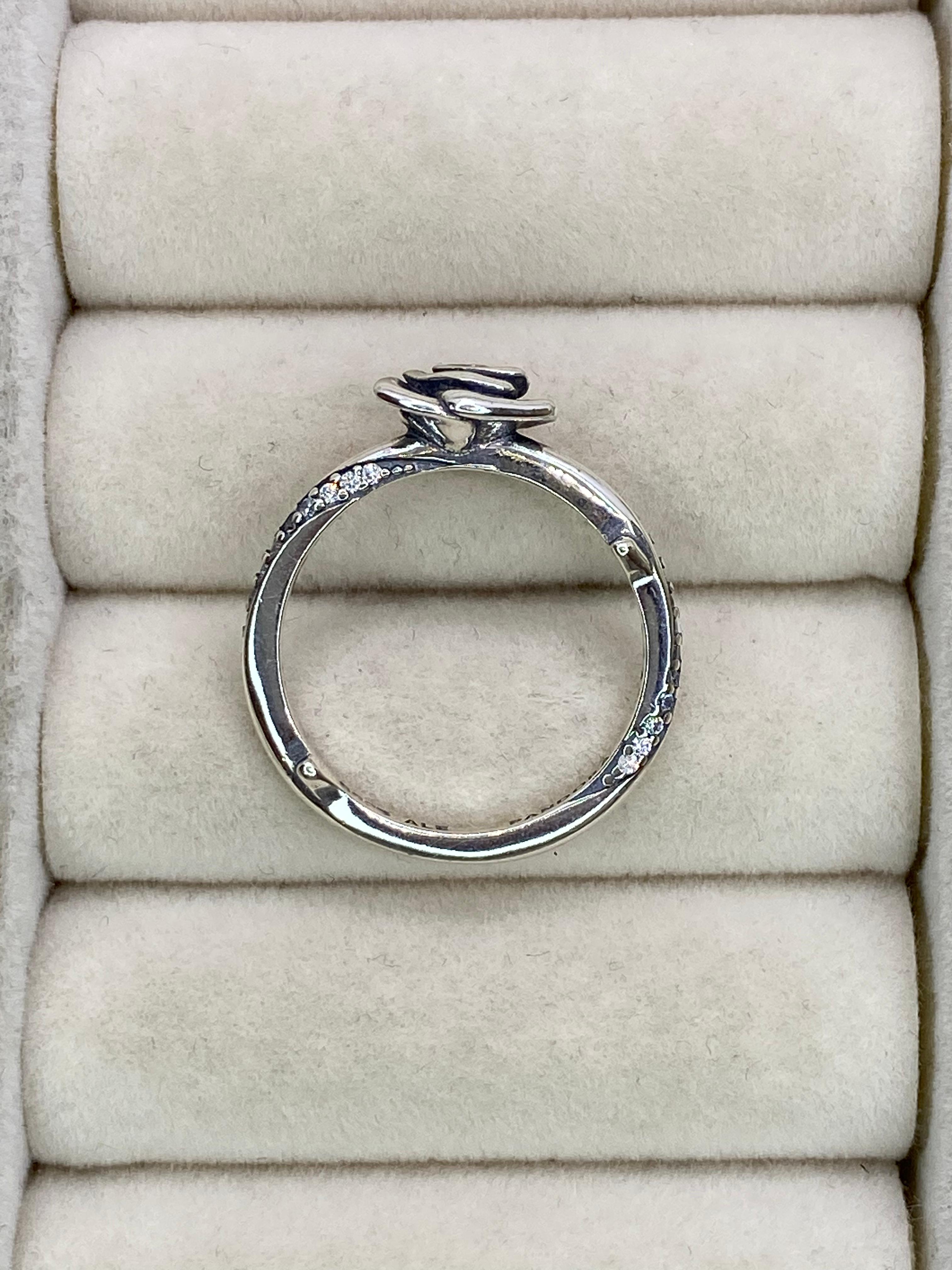Anel em prata 925 legítima, com banho de ródio e zircônias na lateral, um designer delicado romântico