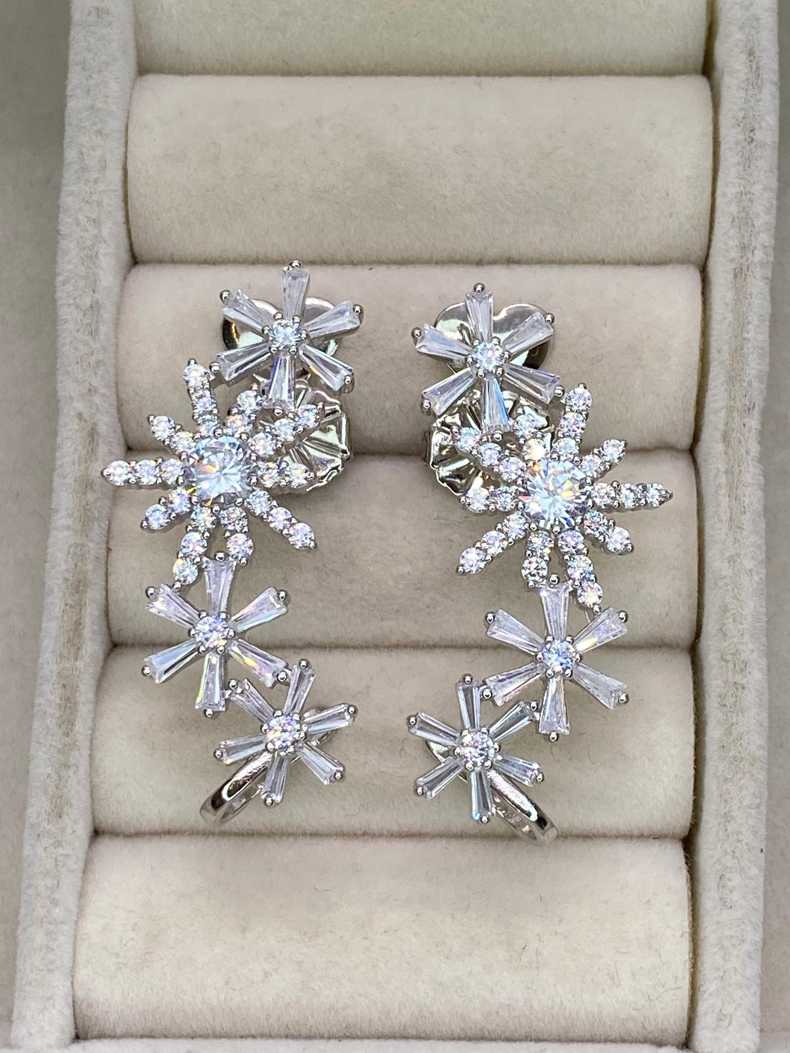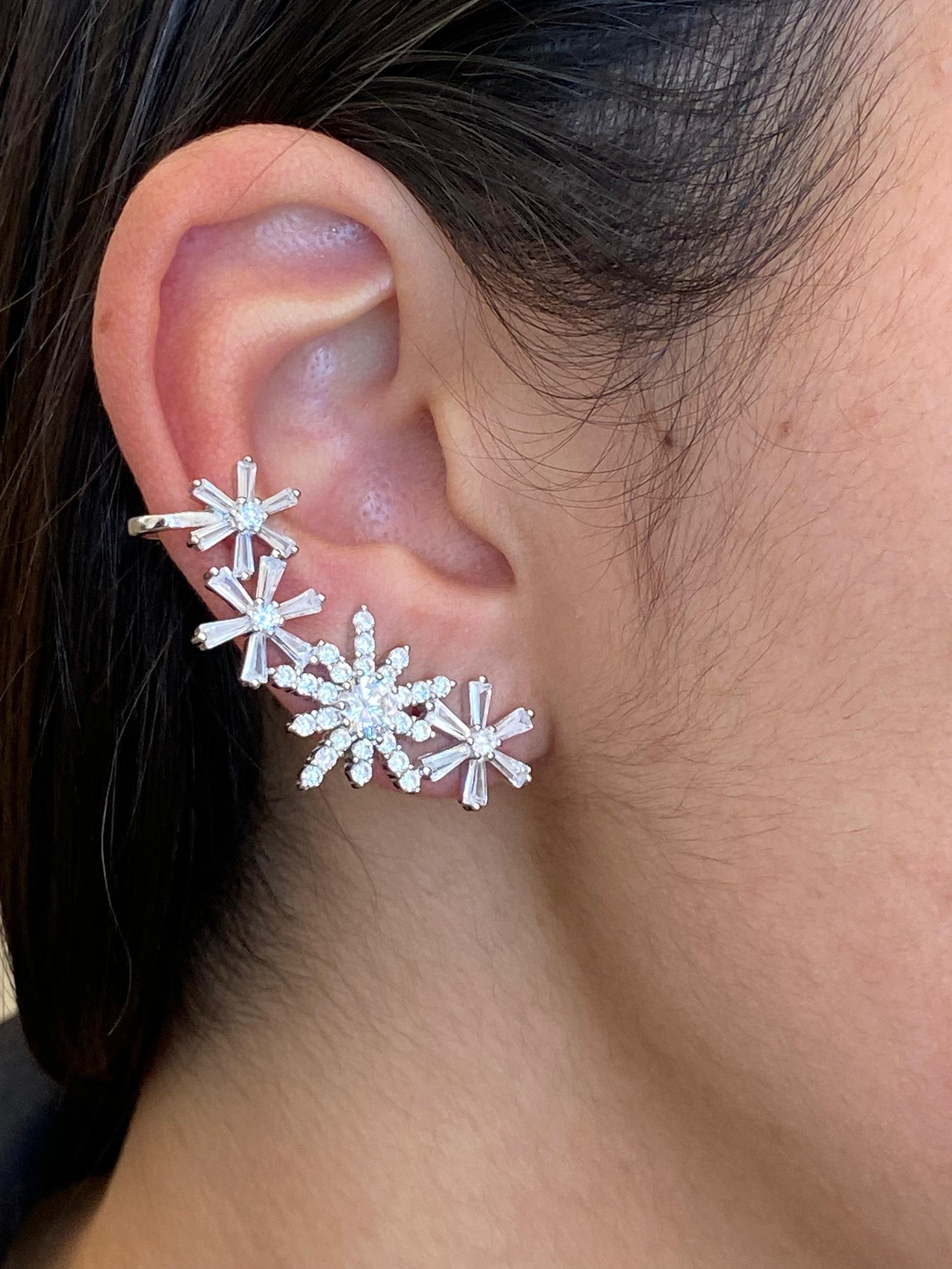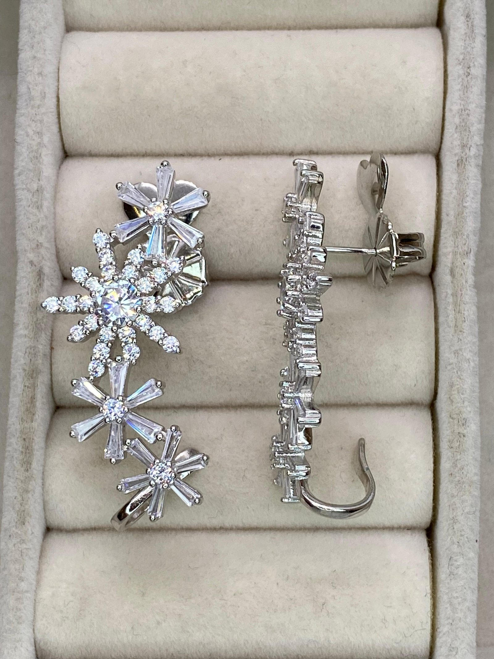 Brinco Earcuff Flores cravejado de zircônias, navetes e baguetes brancas, ideal para ocasiões especiais, peça lindíssima.