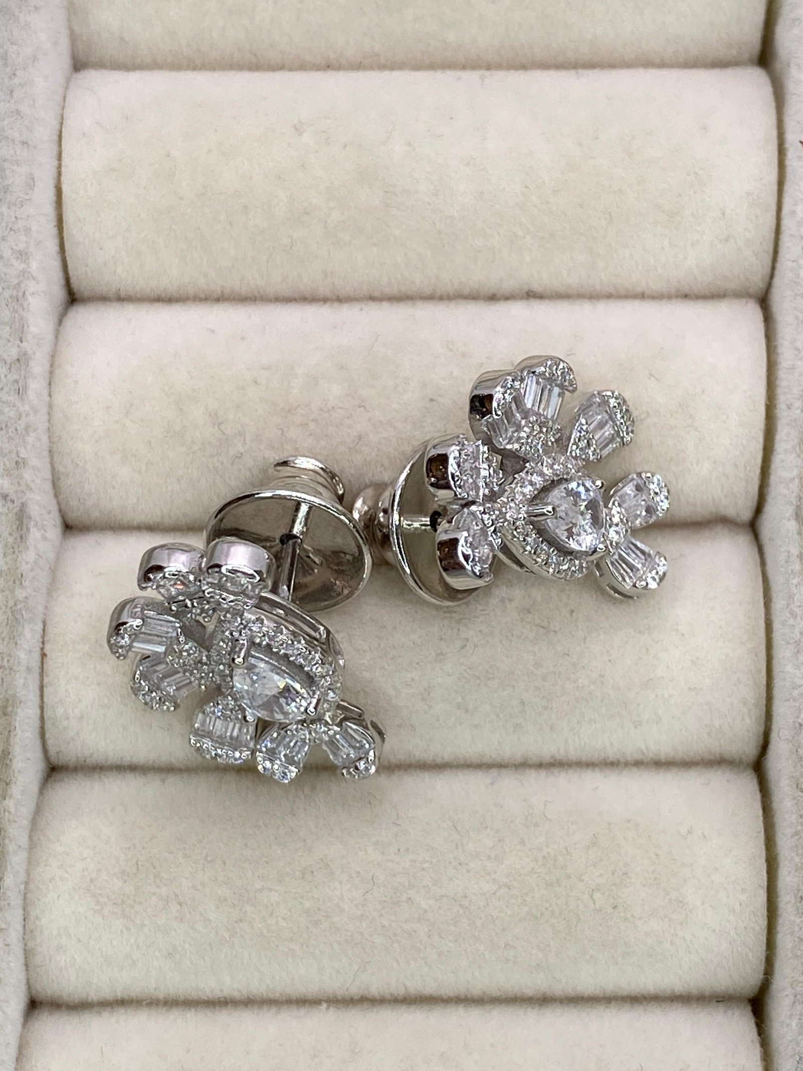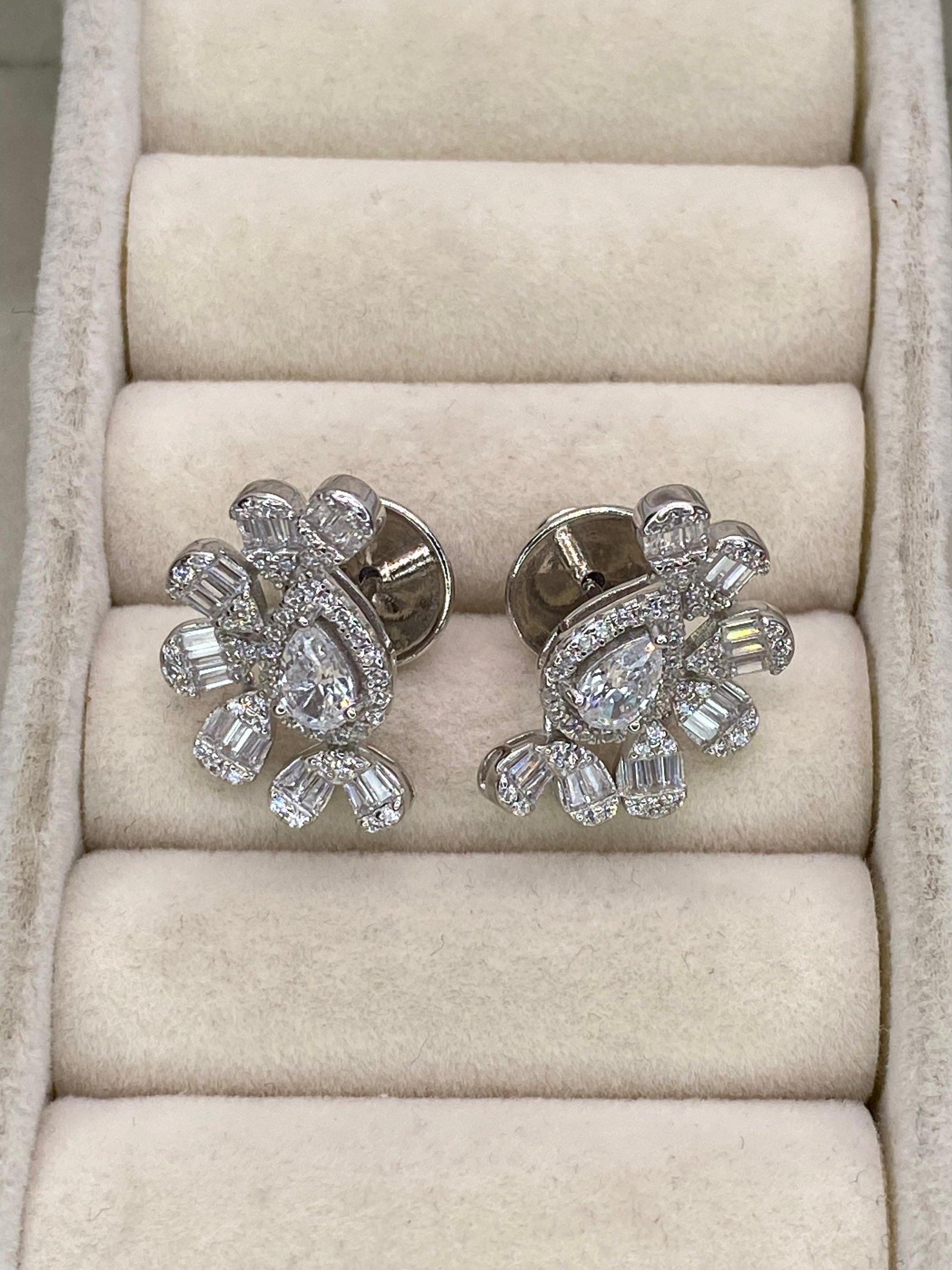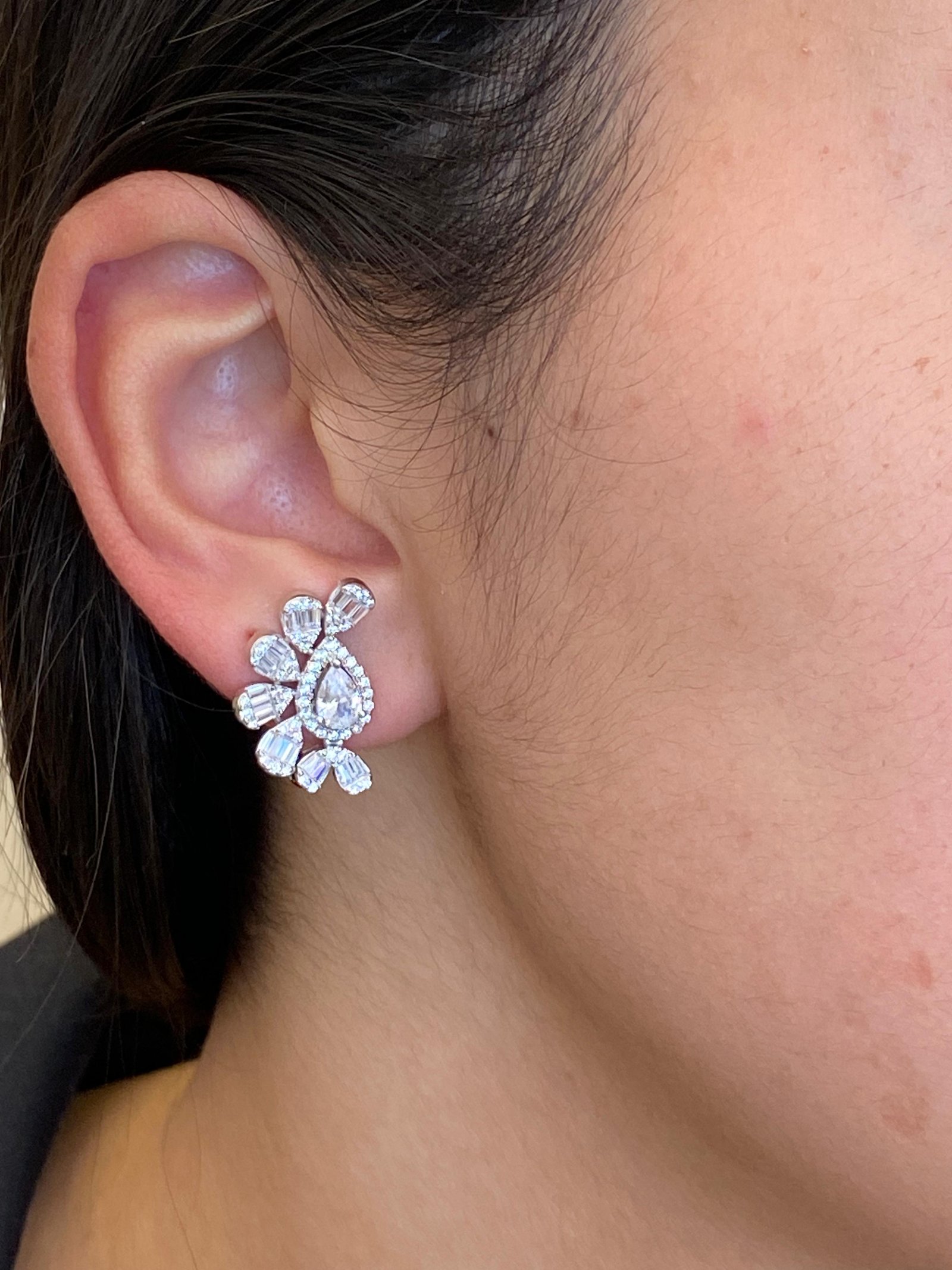 Brinco Earcuff gotas cravejado zircônias e navetes brancos designer Moderno Delicado, ideal para ocasiões especiais e casual.