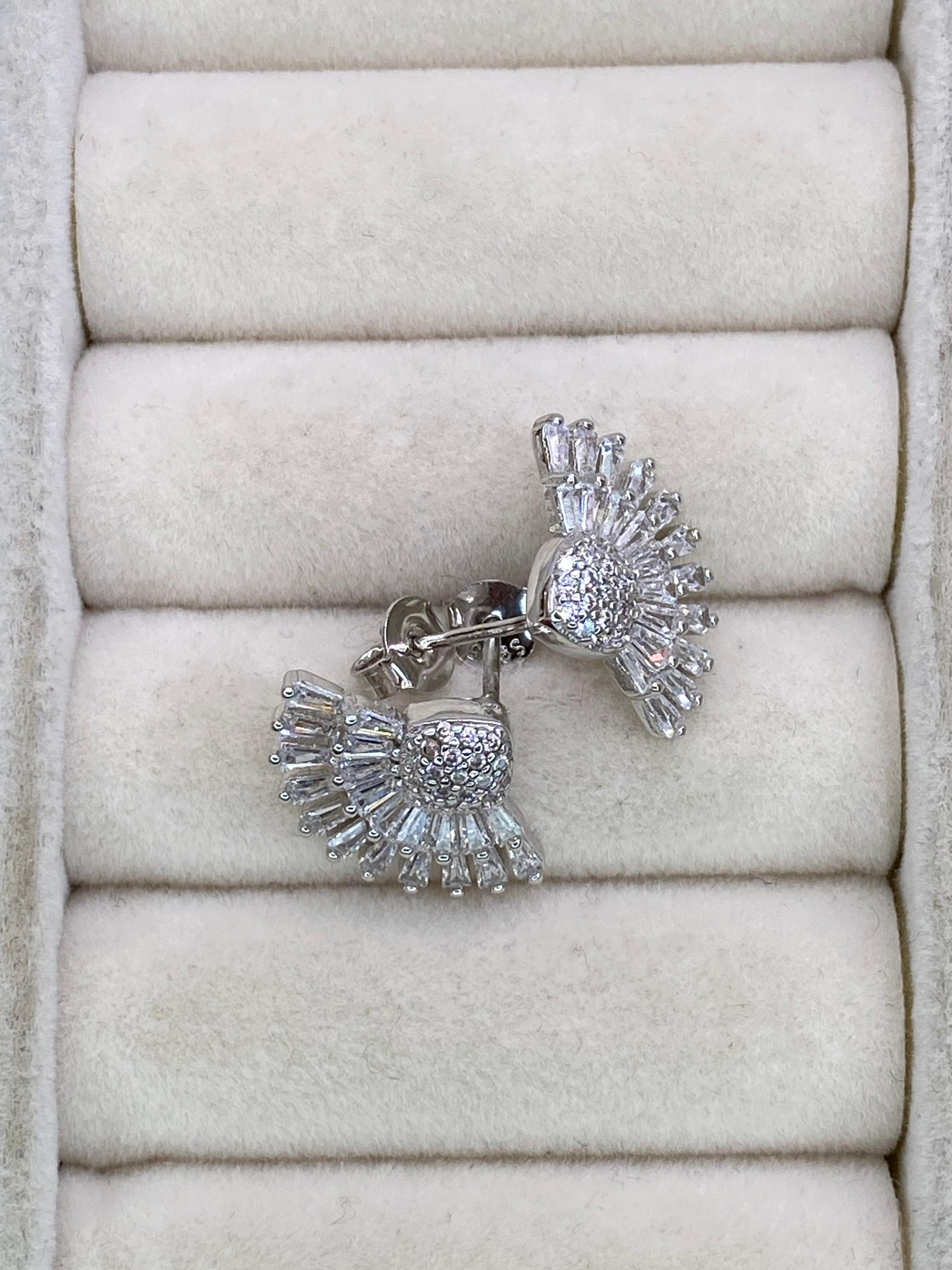 Em prata 925 legítima, com banho de ródio deixando a peça com mais brilho.
