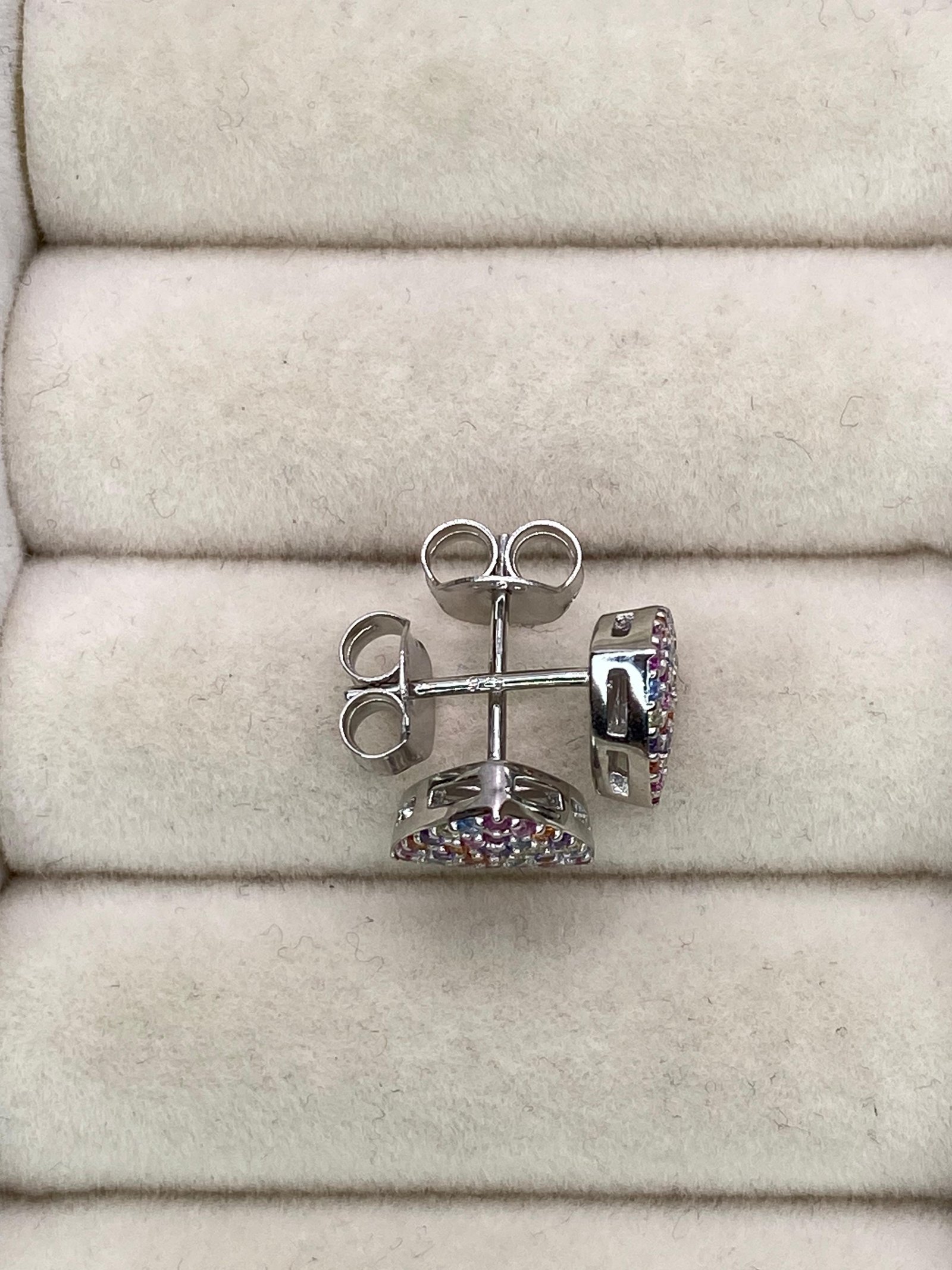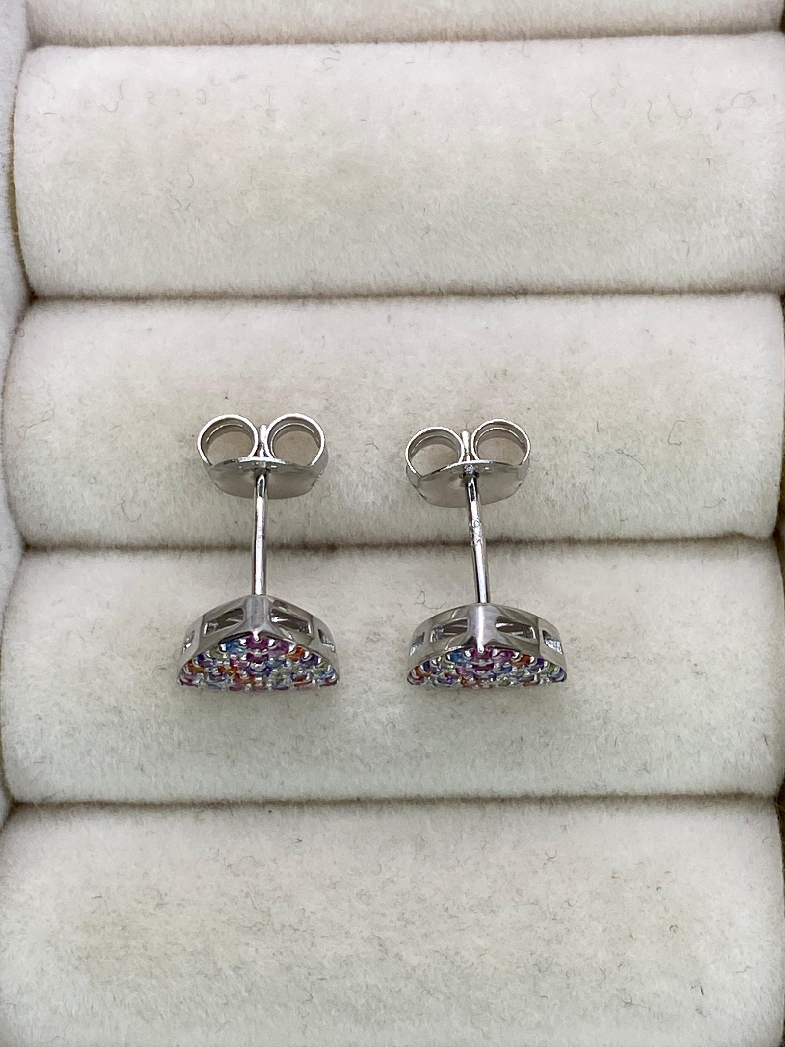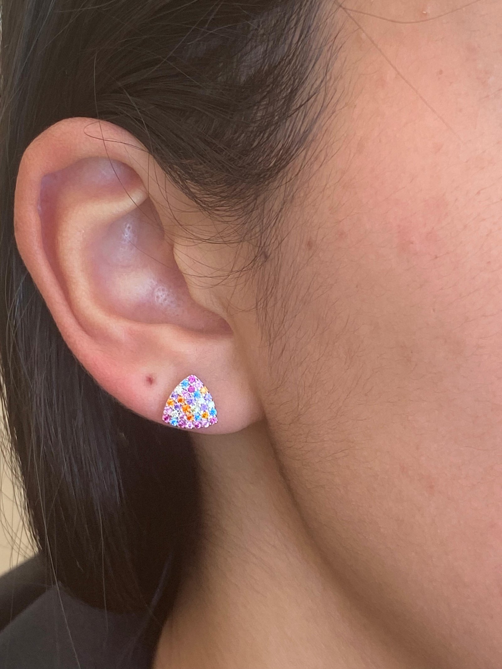 Brinco Delicado para todas ocasiões com mini zircônias coloridas, em prata 925 legítima com banho de ródio.