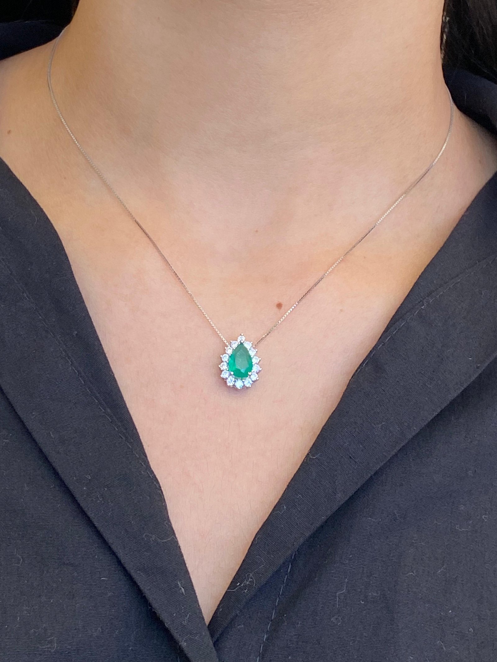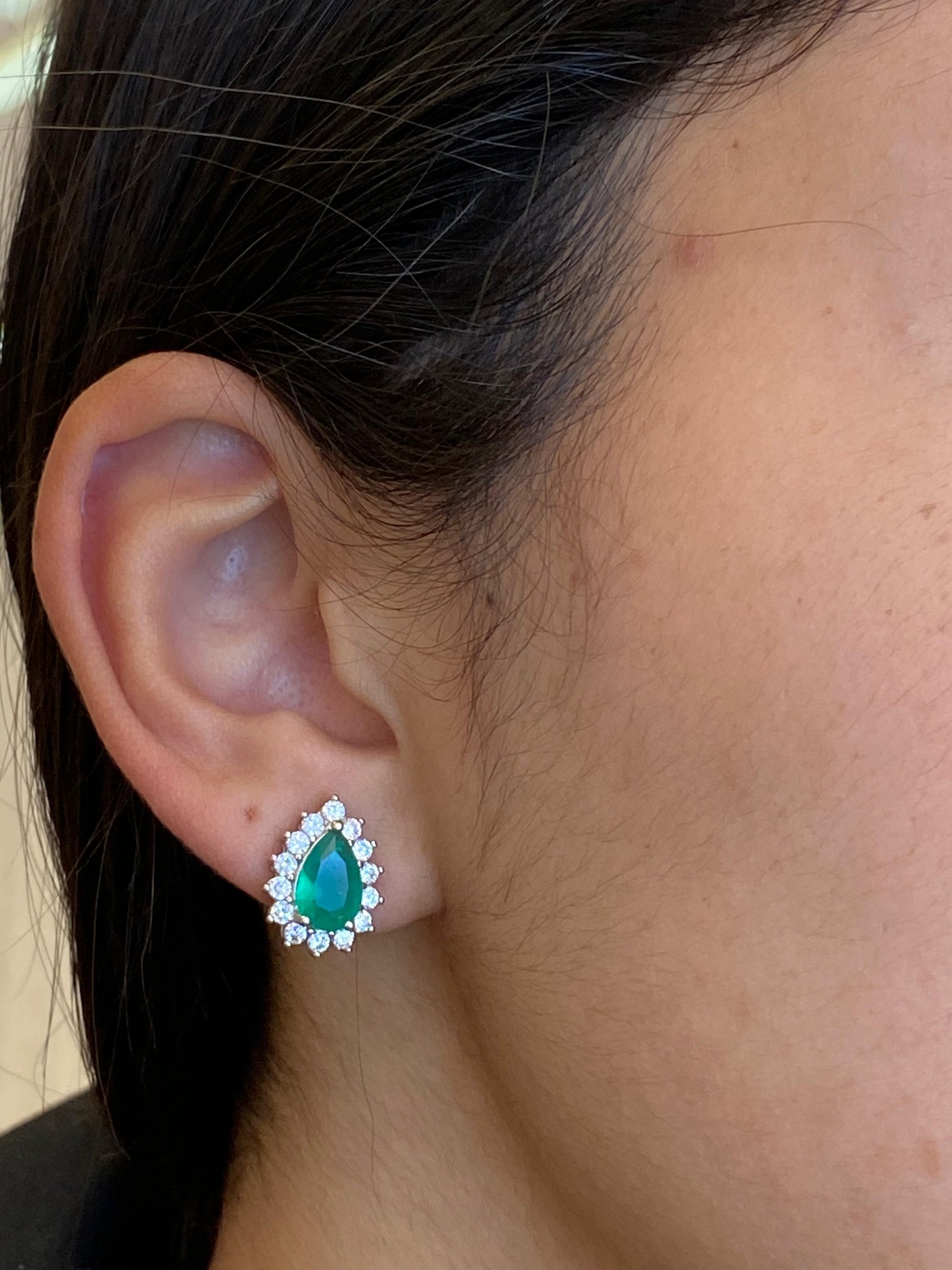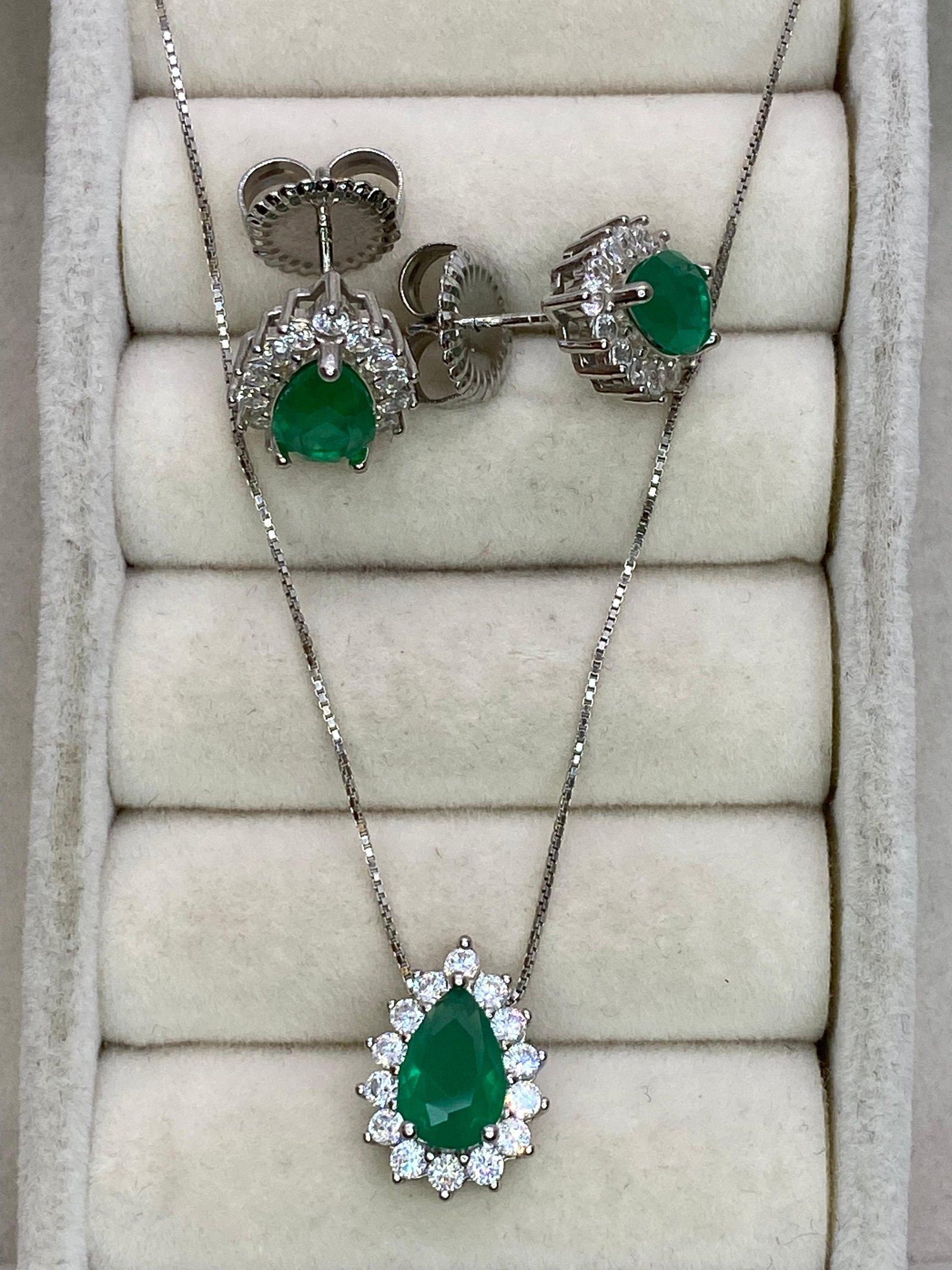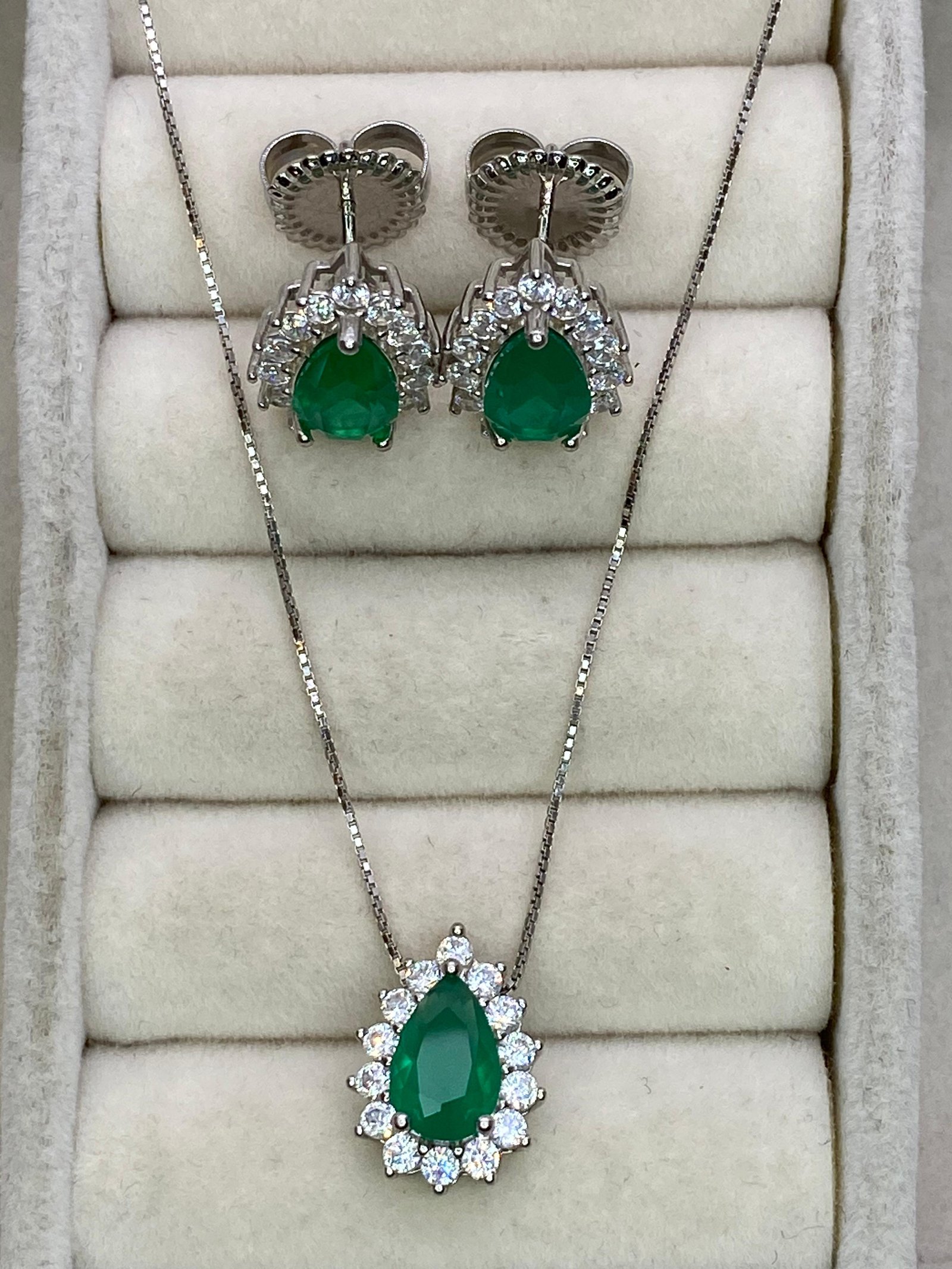 Conjunto colar 40 cm + 10 cm extensor com pingente +1 par de brincos pedra verde esmeralda com zircônias em prata 925 legítima, com banho de ródio um designer romântico uma ótima opção para presentear.