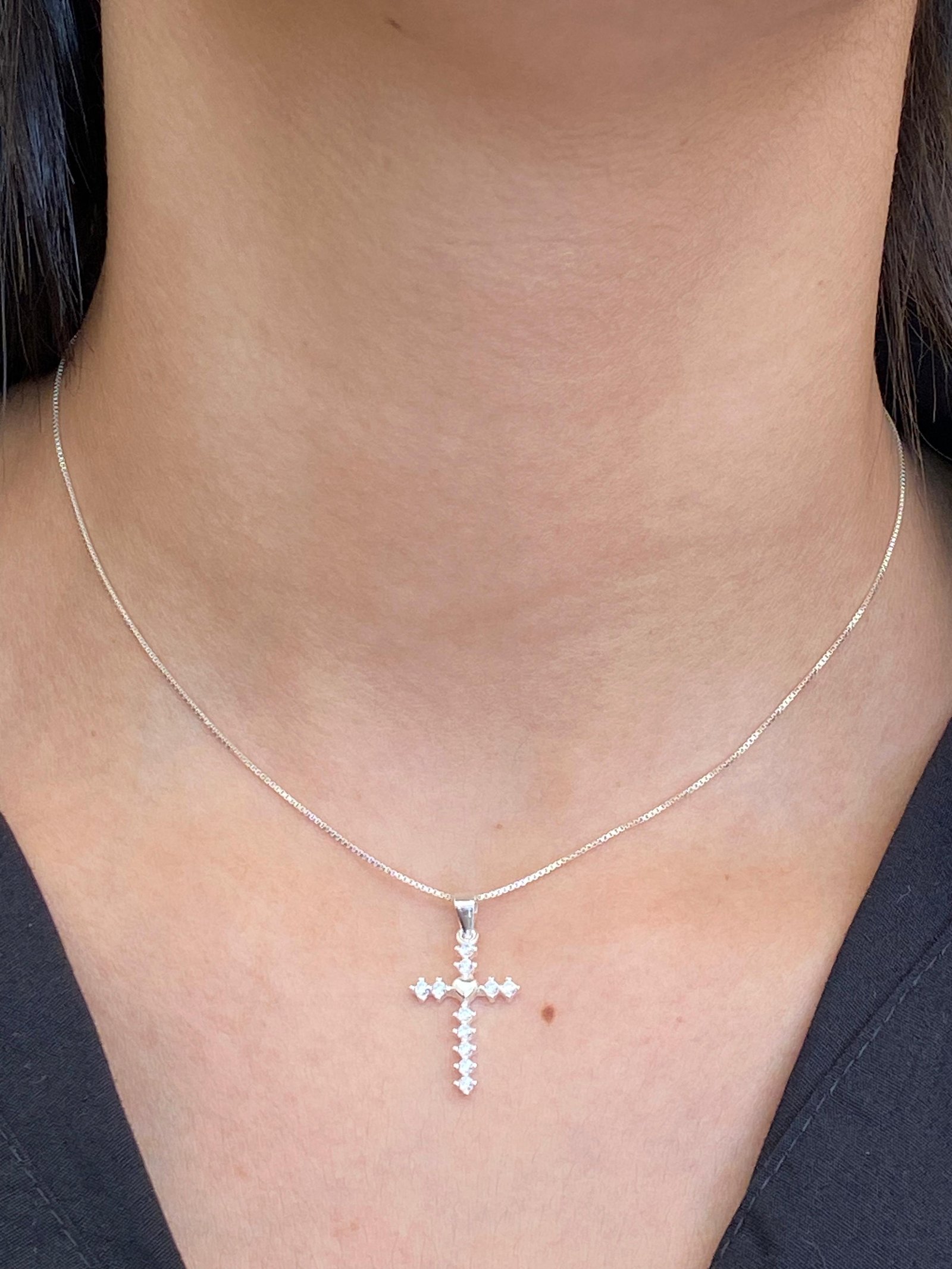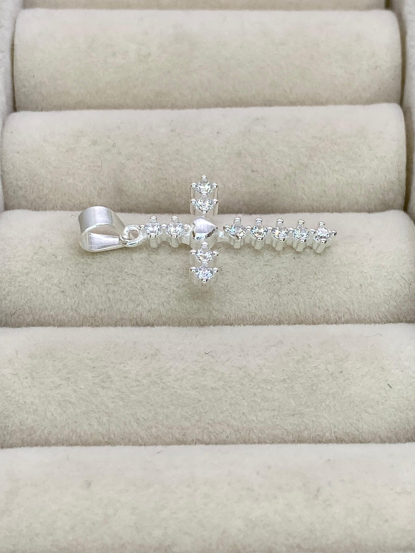 Pingente Cruz cravejado com zircônia em prata 925 legítima um designer Clássico Atemporal, uma ótima opção para presentear.